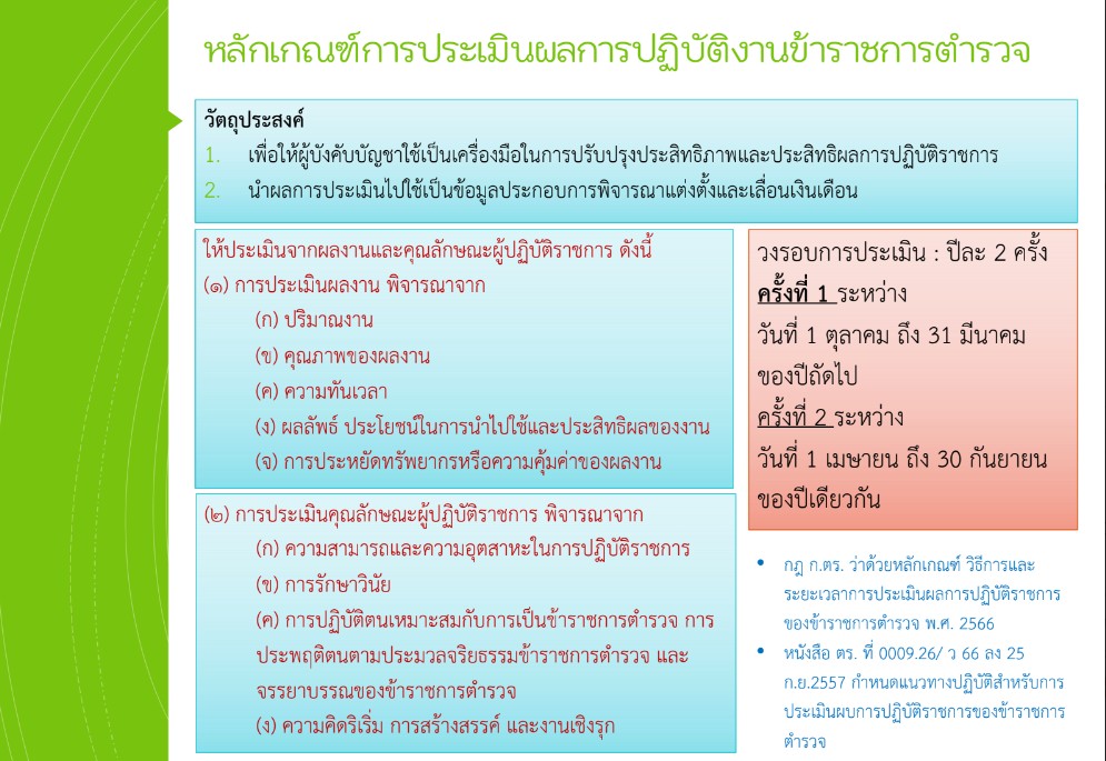 1. กฎ ก.ตร. ว่าด้วยหลักเกณฑ์ วิธีการและระยะเวลาการประเมินผลการปฏิบัติราชการของข้าราชการตำรวจ พ.ศ.๒๕๖๖