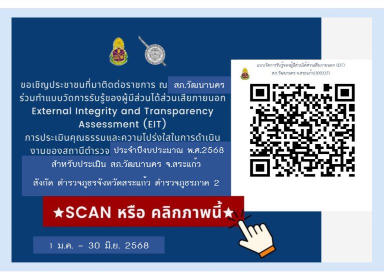 สามารถติดตามข้อมูลผลการดำเนินงานของสถานีตำรวจภูธรวัฒนานคร ตามช่องทางด้านล่างนี้
